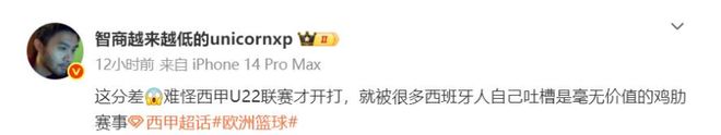 新赛季的西甲U22联赛已经正式拉开大幕!辽宁男篮的两位天才小将黄秋实和张峻豪,因为此前打架被中国篮协禁赛。而辽宁男篮方面没有放弃二人,就把他们送到西甲U22联赛历练。但据知情人透露,西甲U22联赛其实是一个毫无锻炼价值的鸡肋联赛,对运动员的锻炼价值不大,辽篮这下恐怕又被坑惨了。