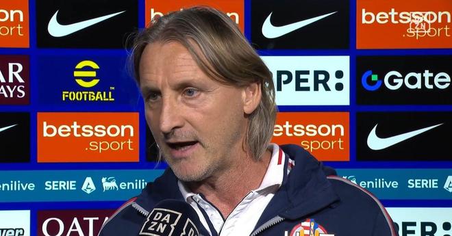 “国际米兰难以对抗?我会用合适的词来形容。我们面对的是闯入欧冠决赛的球队,而我们则是从意乙的升级附加赛中走出来的。今天我们无法依靠所有球员,法耶、凡德佩特以及巴比耶里都上场了。国际米兰配得上胜利,对我来说重要的是球队在一个绝对高质量和高身体对抗强度的环境中所拿出的表现,即使我们最终付出了代价。我们需要尽可能保持在比赛中,并努力实践我们在训练中所做的。国际米兰后来的状态有所下滑,而我们则占据了场上主动,并且成功进球,甚至有机会打进第二个。”