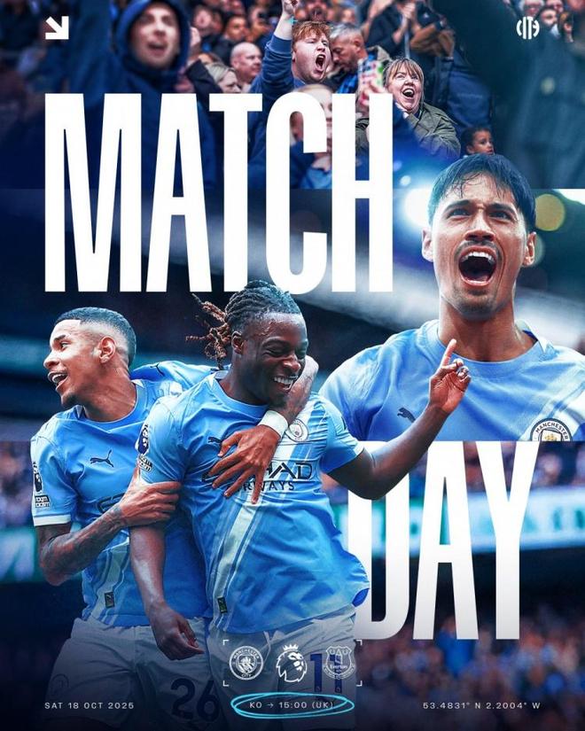 比赛日!曼城晒对战埃弗顿海报,赖因德斯、萨维尼奥等人出镜