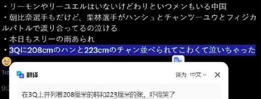 中国女篮最新杀招!张子宇联手韩旭上场,日本网友直言吓哭了