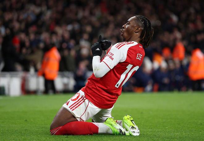 表现非常活跃的埃泽,在半场比赛结束之前,帮助阿森纳扩大领先优势,大禁区线上接到队友传球后,埃泽冷静过掉防守球员,随后随后大力轰门,攻破维卡里奥十指关,让阿森纳带着2球优势,回到了中场更衣室。