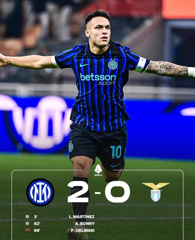 国际米兰坐镇梅阿查迎战来访的拉齐奥。过去两个赛季,国米都未能在自家主场拿下蓝鹰,几次遭遇憋蓝黑军团一口气。最终,劳塔罗闪击、博尼锁定胜局,蓝黑军团2-0完胜,重新杀回意甲积分榜首位。
